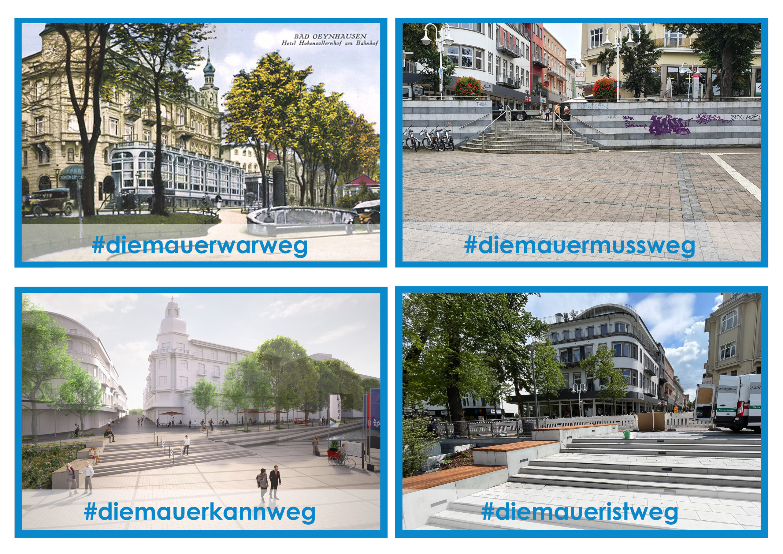 Um diese Trennung etwas korrigieren zu können und den Bahnhof wieder näher an den Eingang zur Stadt zu bringen, wurde die Brüstungsmauer ihrer Brüstung beraubt und der Treppenausschnitt auf 11,00m vergrößert.